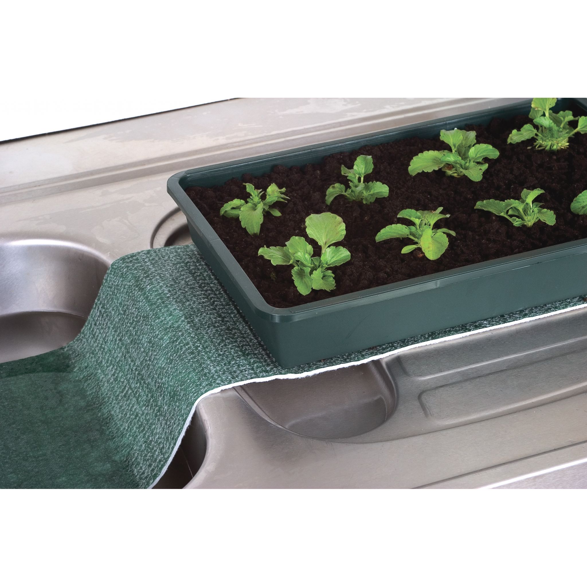 Feeds a constant water supply to plants and seedlings.