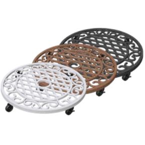 Heavy duty pot caddy made from cast iron with rugged wheels. Weight Capacity up to 136Kg