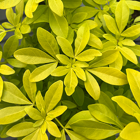 In late spring, the golden canopy is dotted with clusters of small, pure white flowers that carry a heavy, citrus-like perfume. The foliage is also highly aromatic, releasing a pleasant scent when brushed. It forms a dense, naturally rounded mound, making it perfect for a low-maintenance border, a bright container specimen, or a colourful informal hedge. To ensure the best establishment and a healthy root system, we recommend using Rootgrow when planting. To maintain the intensity of the gold and prevent leaf-tip browning, regular feeding with a magnesium-rich fertiliser is highly recommended.
