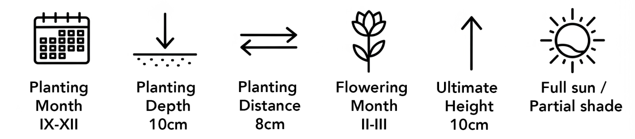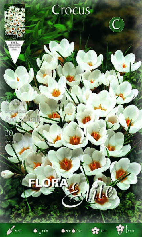 Wake up your garden with the bright and beautiful Crocus 'Ard Schenk'. As one of the earliest bulbs to flower, its brilliant white blooms are a welcome sight from February, often pushing through frost or snow to announce that spring is on its way. The flowers open wide in the sunshine to reveal a vibrant golden-yellow heart, attracting the first pollinators of the season. They are fantastic for naturalising in lawns and creating drifts of colour under trees and at the front of borders. For an extended early spring display, combine them with the cheerful yellow trumpets of Narcissus 'Tête-à-Tête' and the deep, rich blues of Iris Reticulata Harmony for a stunning carpet of colour. To enjoy this display each year, plant the corms from September to December about 10cm deep and 8cm apart in a sunny or lightly shaded position with well-drained soil.