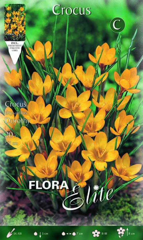 Bring a splash of pure sunshine to your garden with the beautiful Crocus 'Dorothy'. As a chrysanthus or 'Snow Crocus', it is one of the earliest to bloom, often flowering in February, and produces an abundance of flowers from each corm. The blooms are a vibrant, sunny yellow, with pretty, purple-bronze feathering on the outside of the petals, and they have a lovely, sweet honey-like scent. They are a perfect choice for brightening up pots, rockeries, path edges, and for naturalising in sunny lawns where they will multiply to create a golden carpet. For a stunning early spring combination, plant them with the deep, velvety blue of Iris Reticulata Harmony to create a striking contrast. Now is the perfect time to plant for a beautiful display. Choose a sunny spot with well-drained soil, planting the corms about 10cm deep and 8cm apart.