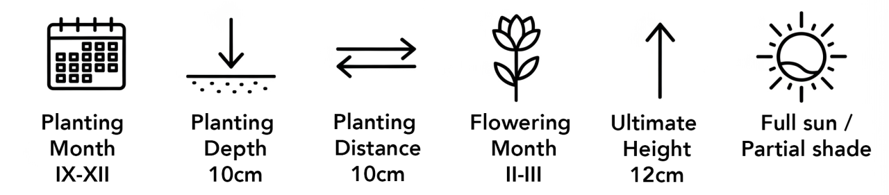 Create a truly elegant and sophisticated display with the magnificent Crocus 'Jeanne D'Arc'. This award-winning variety is considered one of the very best white crocuses, producing large, luminous white blooms in February and March. Each pristine flower has a delicate, dark purple feathering at its base and opens in the sun to reveal a vibrant orange heart. 'Jeanne D'Arc' is a strong and reliable grower, perfect for creating bold, bright drifts in lawns, under trees, and at the front of borders where it will naturalise beautifully. For a truly classic and high-contrast display, plant it with the intense, deep blue of Iris Reticulata Harmony or the sunny yellow of Narcissus 'Tête-à-Tête'. Now is the perfect time to plant for a spectacular spring. Choose a spot with well-drained soil in full sun or light shade, planting the corms about 10cm deep and 10cm apart.