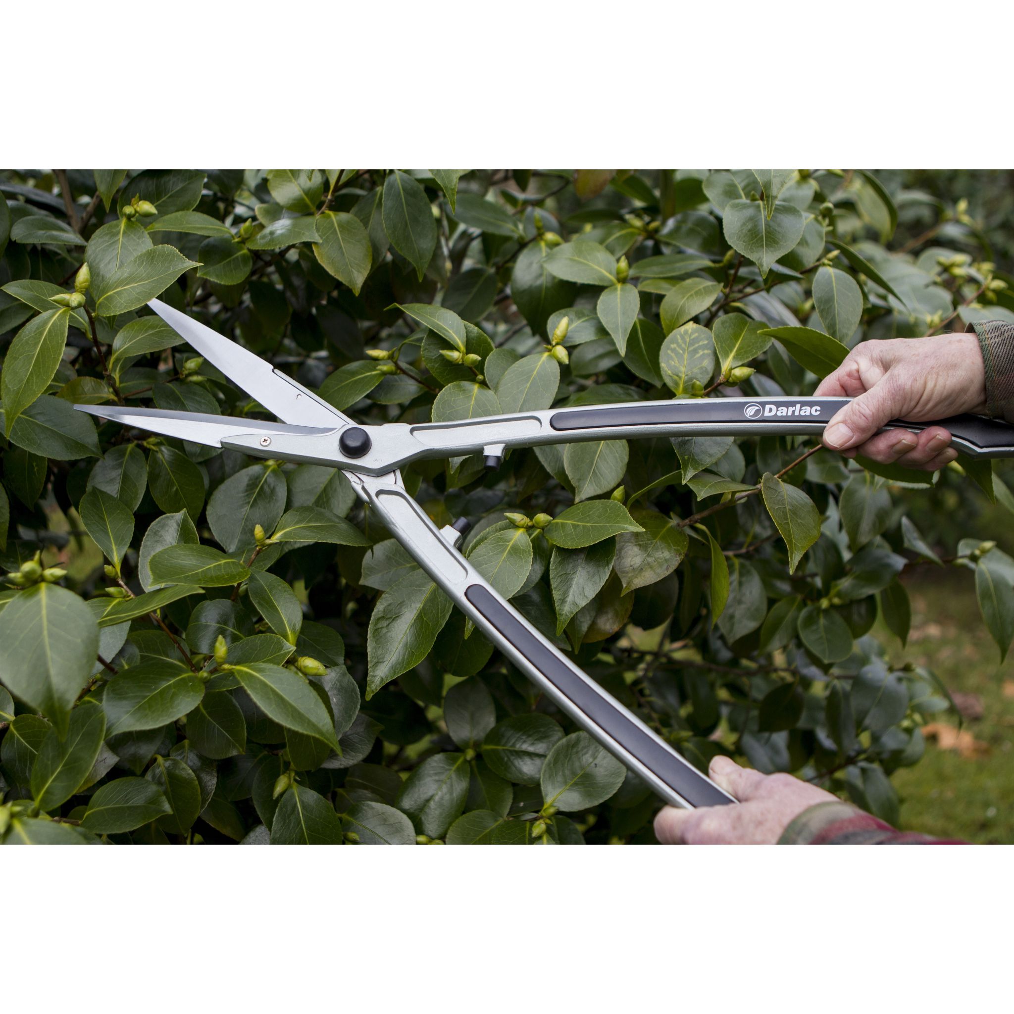 Extra long handles for greater reach and razor sharp replaceable carbon steel blades. A very popular, lightweight and well balanced trimming shear. Weighs less than a kilo. Highly recommended for shaping Topiary, Hedges trimming and grass cutting. Tension adjuster. Spare parts availabl. Length of Blades - 200 mm