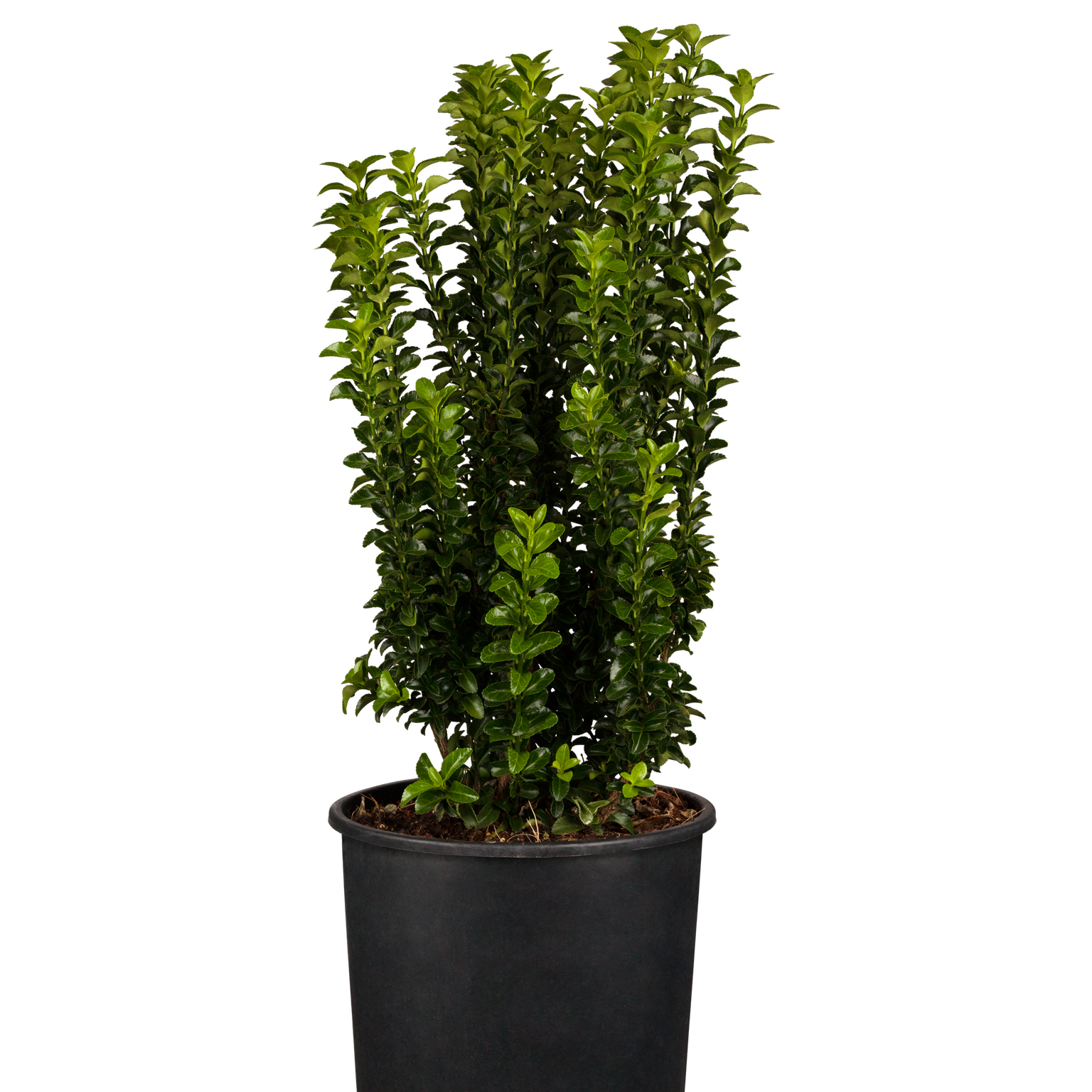 This distinctive Japanese Spindle is prized for its extremely narrow, vertical growth habit, resembling a miniature Italian Cypress. The stiff, upright branches are densely covered in small, leathery, dark green leaves that look neat and tidy all year round. Unlike many other Euonymus varieties, it rarely flowers, putting all its energy into its structural form. It is an excellent choice for adding vertical accents to rockeries, narrow borders, or contemporary courtyards without taking up much ground space.