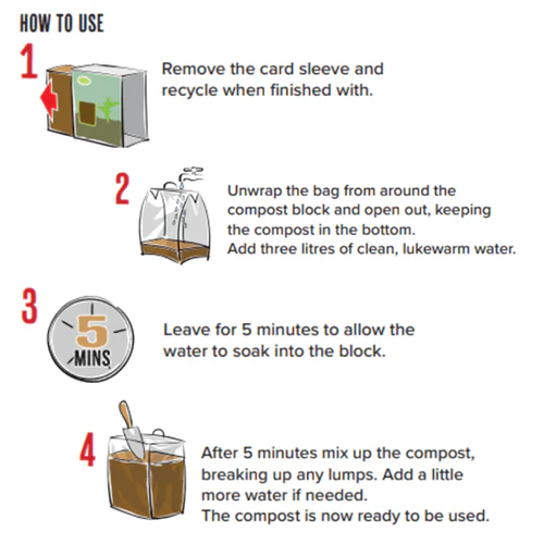 - Unwrap the bag from around the compost block and open it out, keeping the compost in the bottom.