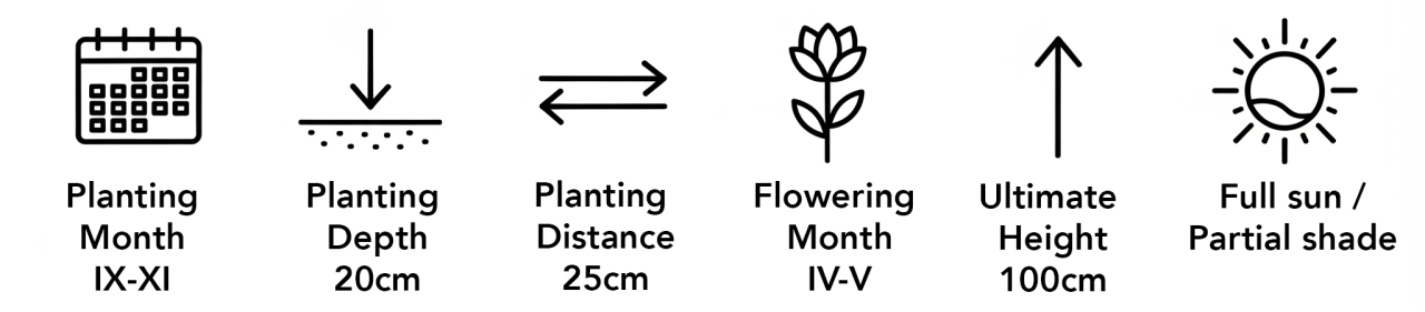 Create a truly regal and architectural statement in your garden with the magnificent Fritillaria 'Aurora'. This impressive plant produces a tall, powerful stem topped with a striking whorl of large, bell-shaped, glowing orange flowers, elegantly crowned with a tuft of spiky green leaves. Flowering in April and May, it is a guaranteed showstopper and a fantastic way to add height and a touch of the exotic to your spring borders. For a truly classic and high-impact combination, underplant them with a river of deep blue from Muscari armeniacum to create a stunning colour contrast. Now is the perfect time to plant for a spectacular show. Choose a sunny spot with well-drained soil. It is very important to plant the large bulbs on their side, about 20cm deep and 25cm apart, to prevent water from collecting in the hollow top and causing rot.