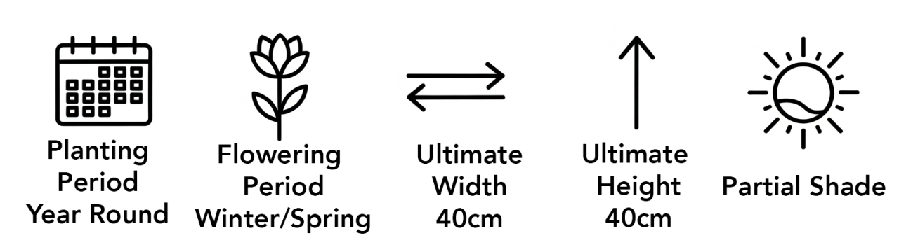 It is perfect for brightening up shady borders, woodland gardens, or planting in containers near a doorway. For a beautiful contrast in texture, plant it alongside the delicate fronds of evergreen ferns or the dark, grass-like foliage of Ophiopogon planiscapus 'Nigrescens'. To ensure these plants establish a strong root system, we recommend using Rootgrow when planting. To encourage vigorous growth and plenty of flowers, apply a long-lasting feed like Levington Fish, Blood & Bone in early spring.