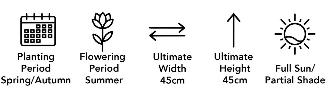 It is an excellent choice for edging paths, underplanting roses, or combining with dark-leaved plants like Ophiopogon for high contrast. It thrives in containers or borders. To ensure the plant establishes a strong root system, we recommend using Rootgrow when planting. To support vigorous root growth and maintain a robust clump, apply Levington Fish, Blood & Bone in early spring.