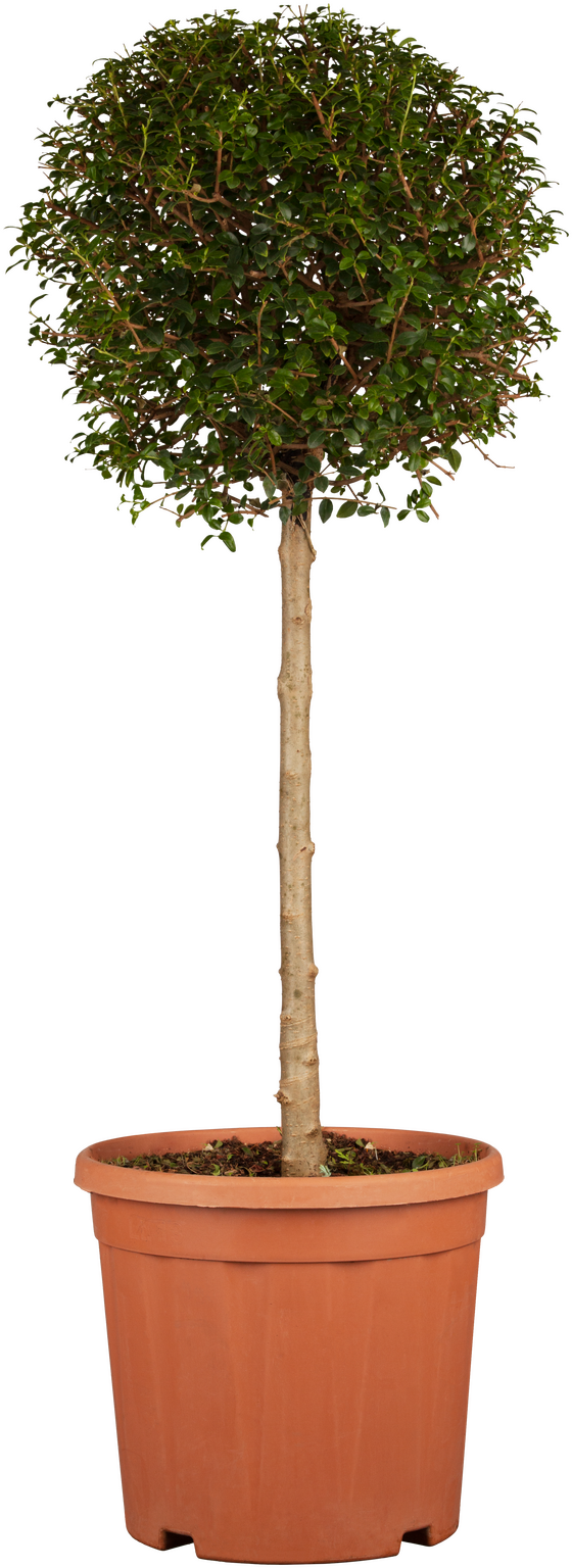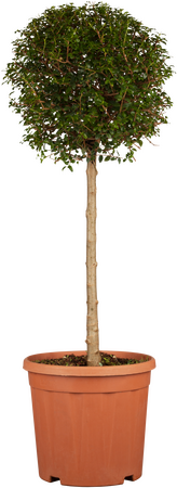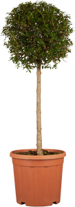 This elegant topiary tree is a premium selection for creating dramatic focal points. Botanically known as Ligustrum delavayanum, it features tiny, glossy dark green leaves and dense branching that responds exceptionally well to clipping. As a half standard, it has a taller, clear stem topped with a substantial, compact spherical head, lifting the foliage well above the surrounding planting. It provides fantastic, year-round formal structure. Small white flowers may appear in summer followed by black berries, but these are usually clipped off to maintain the sharp geometric shape.
