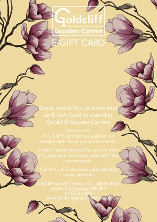 Goldcliff Garden Centre does not accept liability for lost, stolen or damaged E-Gift Cards.