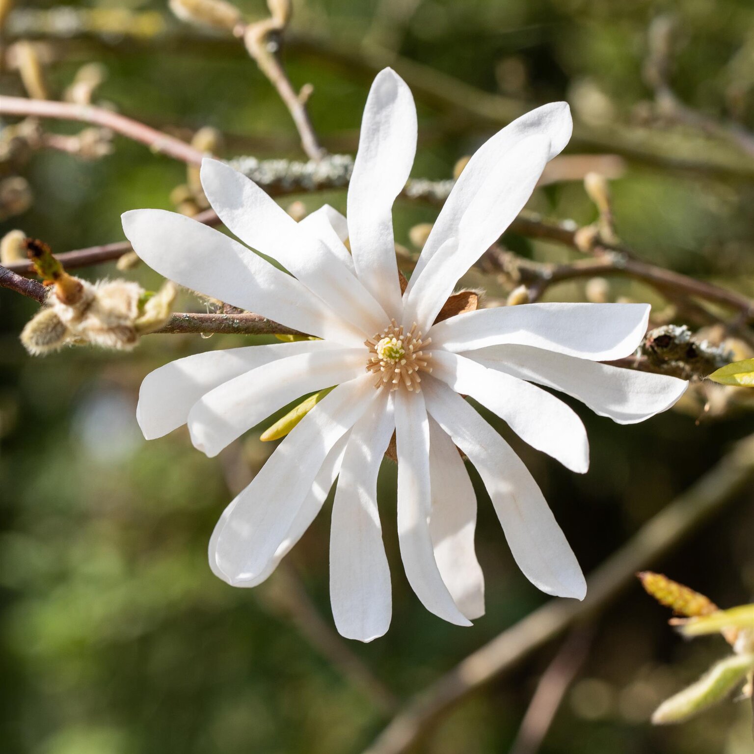 This elegant 'lollipop' tree is a sophisticated choice for adding height and structure to a patio or small courtyard without overwhelming the space. The quarter standard form lifts the exquisite blooms off the ground, allowing their delicate beauty and fragrance to be enjoyed at a lower level—perfect for placing next to a bench or pathway. Before the leaves appear, the bare branches are smothered in silky buds that open into spectacular, star-shaped, pure white flowers. It is compact and slow-growing, making it ideal for permanent planting in a large container.