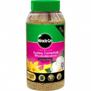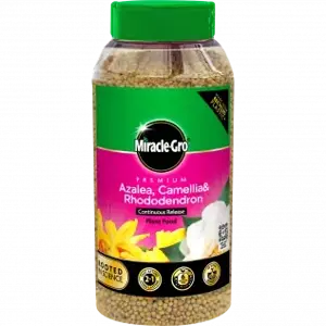 - Add the recommended amount of Miracle-Gro® Premium Azalea, Camellia & Rhododendron Continuous Release Plant Feed.