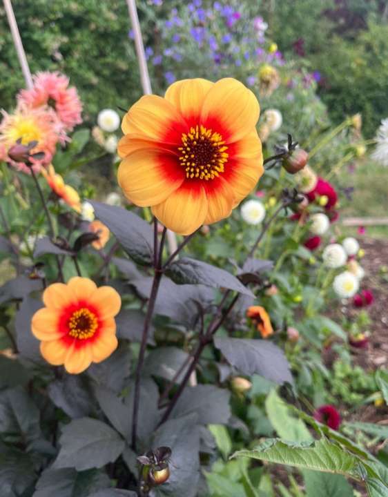 Dahlias can be grown in both the ground and in containers, thriving in rich, well-drained soil in a sunny but if possible, a slightly sheltered position away from strong winds, but you can use plant supports where necessary.