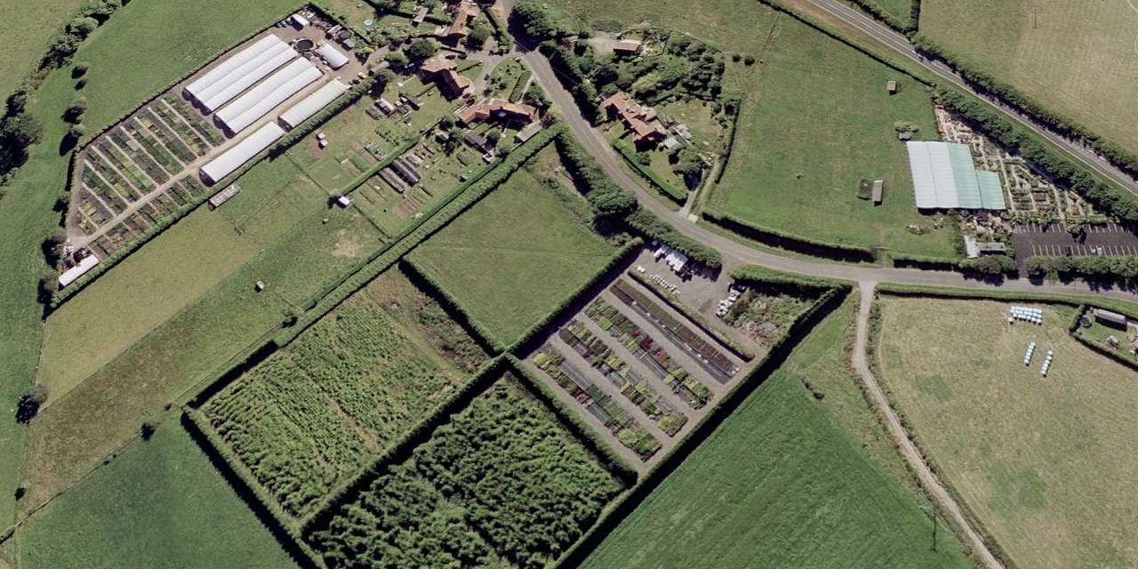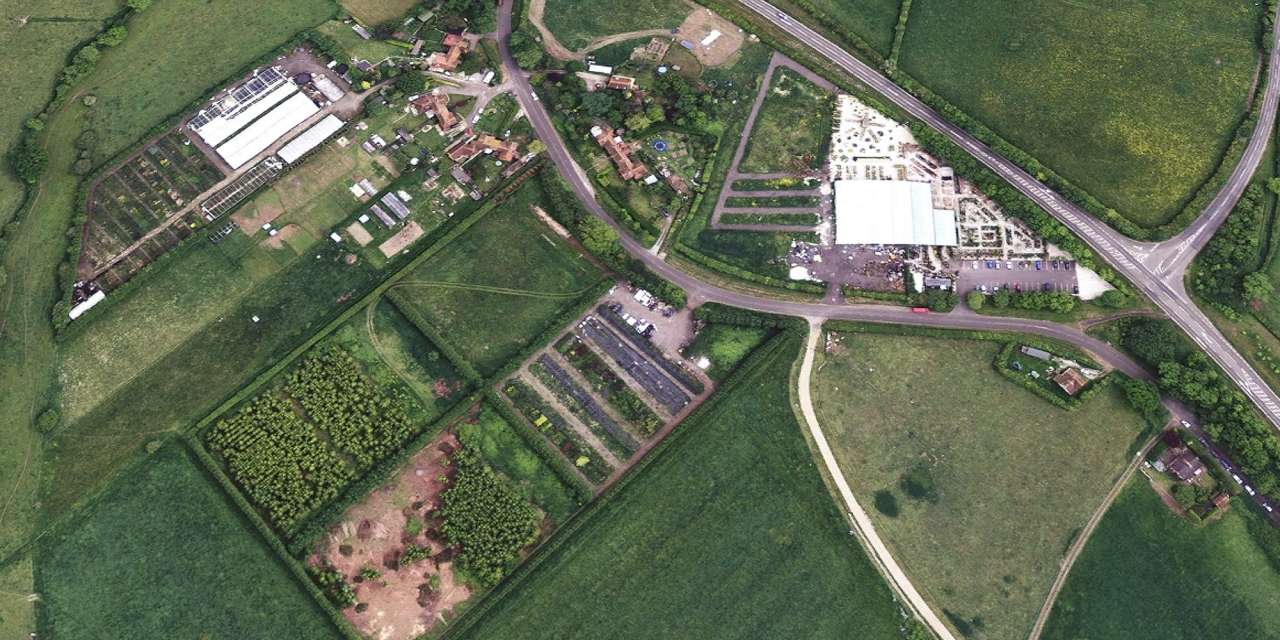 An aerial view showing how the garden centre has developed from a humble polytunnel to the site it is today.