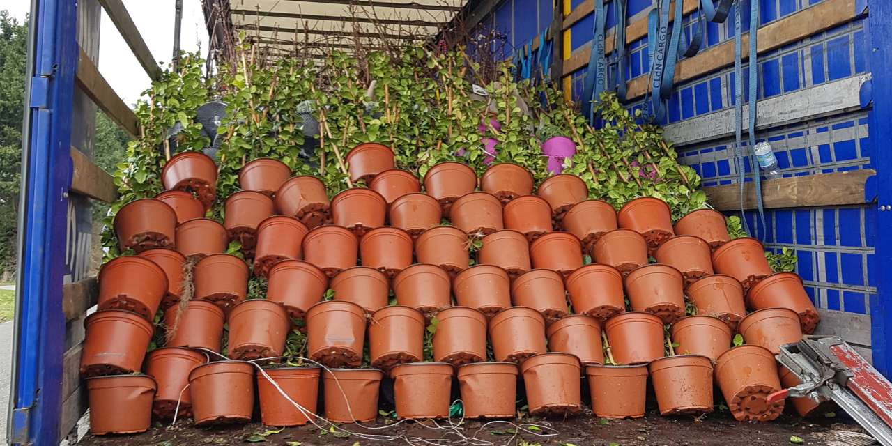 Each year Matthew goes on a trip to Italy and hand-selects the plants we want to stock. Here we are organising and labelling the new shrubs and trees fresh off the lorry.