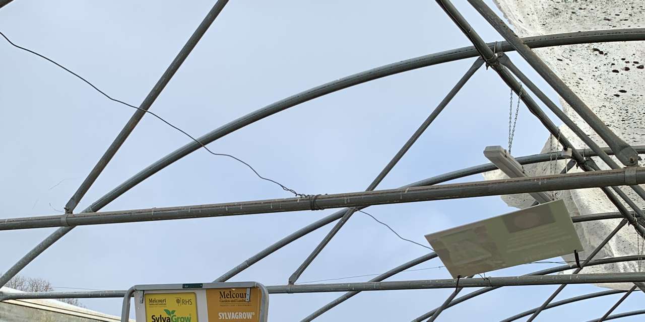 Storm Eunice decided we didn't need a roof on one of our tunnels! Luckily it was the one housing the compost and stones so water damage wasn't an issue.
