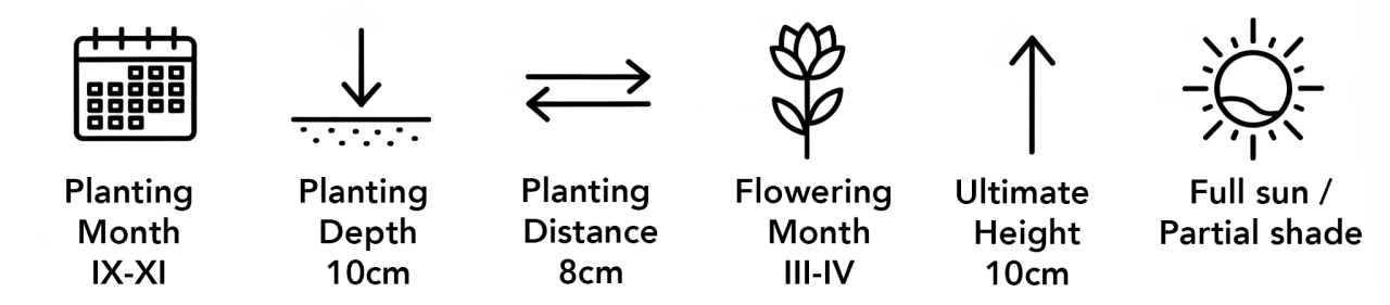 Create a magical, shimmering carpet of white with the lovely Scilla Siberica 'Alba'. This charming Siberian Squill is one of the earliest bulbs to flower, producing an abundance of delicate, bell-shaped white flowers from March. It is a fantastic choice for naturalising under trees and shrubs, in lawns, and at the front of borders, where it will happily multiply to create a larger display each year. Its bright white blooms are a welcome sight after winter and provide a vital early food source for bees. For a stunning and classic early spring combination, plant it with the rich purple of Crocus 'Flower Record' or the intense blue of Iris Reticulata Harmony. Now is the perfect time to plant for a beautiful spring. Choose a spot with well-drained soil in sun or partial shade, planting the bulbs about 10cm deep and 8cm apart.