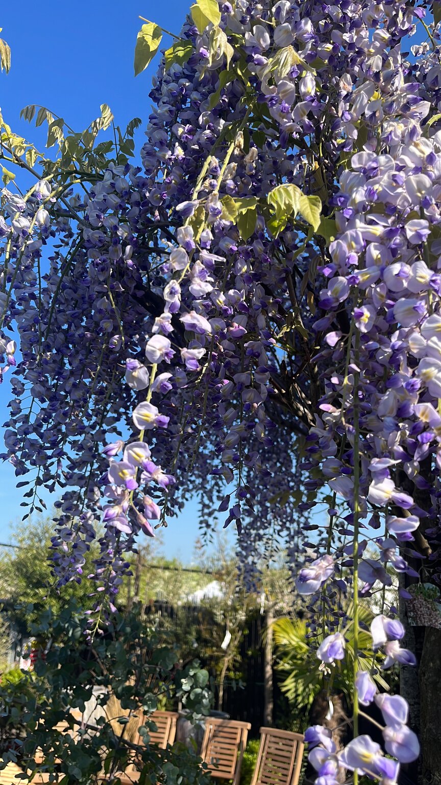 Wisteria x formosa 'Issai' is a cross between Japanese and Chinese Wisteria, known for its stunning, fragrant mauve-violet flowers in spring. Ideal for a sheltered spot in full sun or a west-facing site, it thrives in moist but well-drained soil of any type. Prune twice a year for best results. Use Rootgrow and balanced feed for optimal growth. Grows to approximately 10m tall and 8m wide.