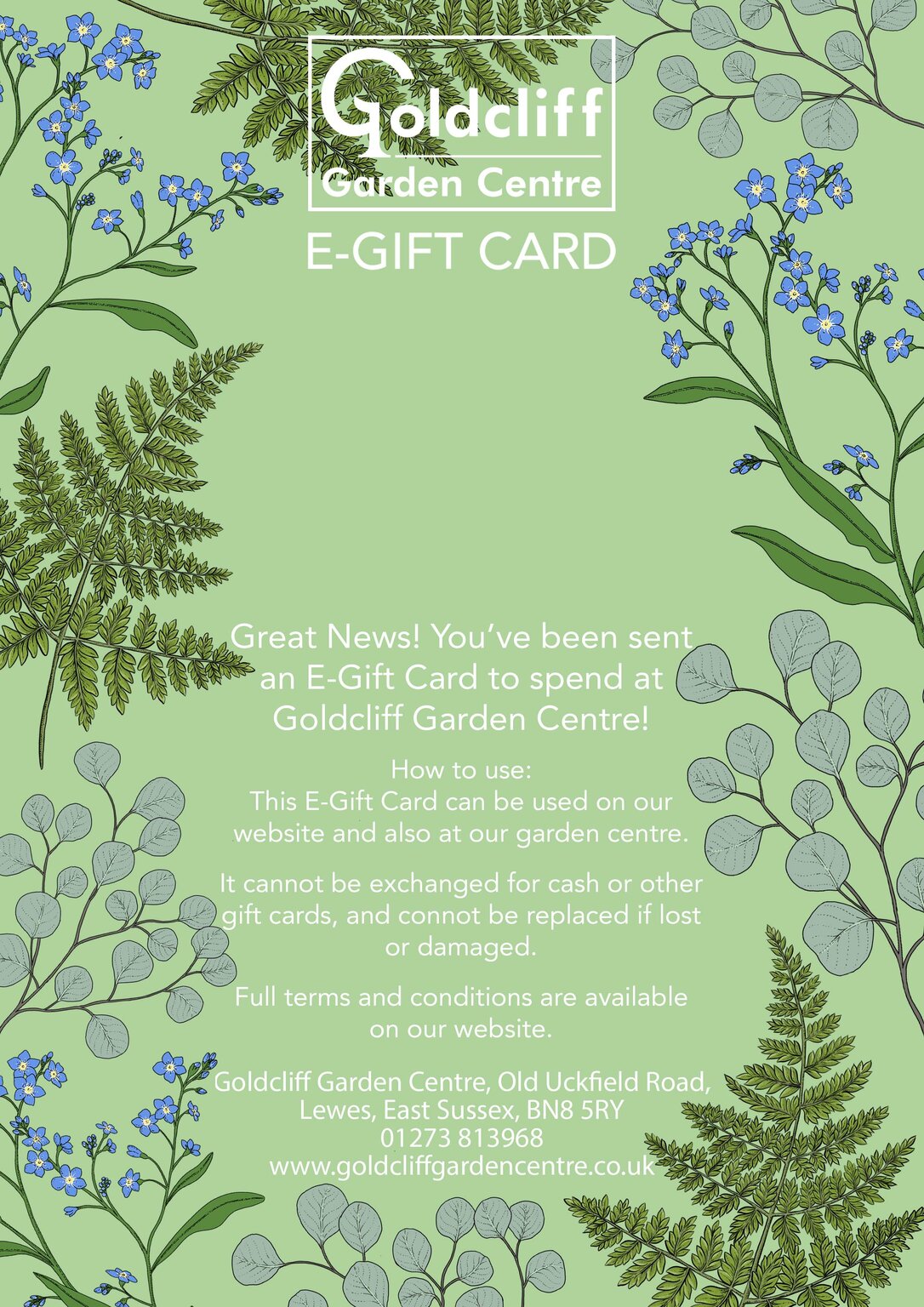 Goldcliff Garden Centre E-Gift Cards can be redeemed in-store at Goldcliff Garden Centre and also our online shop.