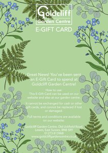Goldcliff Garden Centre does not accept liability for lost, stolen or damaged E-Gift Cards.